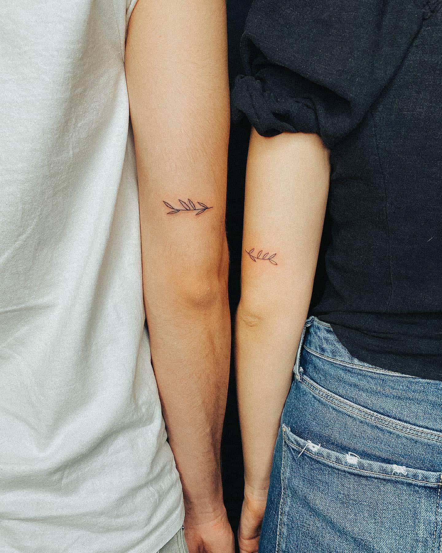 The delicate leaf designs are a perfect symbol of growth and harmony, reflecting the special relationship they share. I think choosing designs that resonate with personal stories can make tattoos even more memorable.