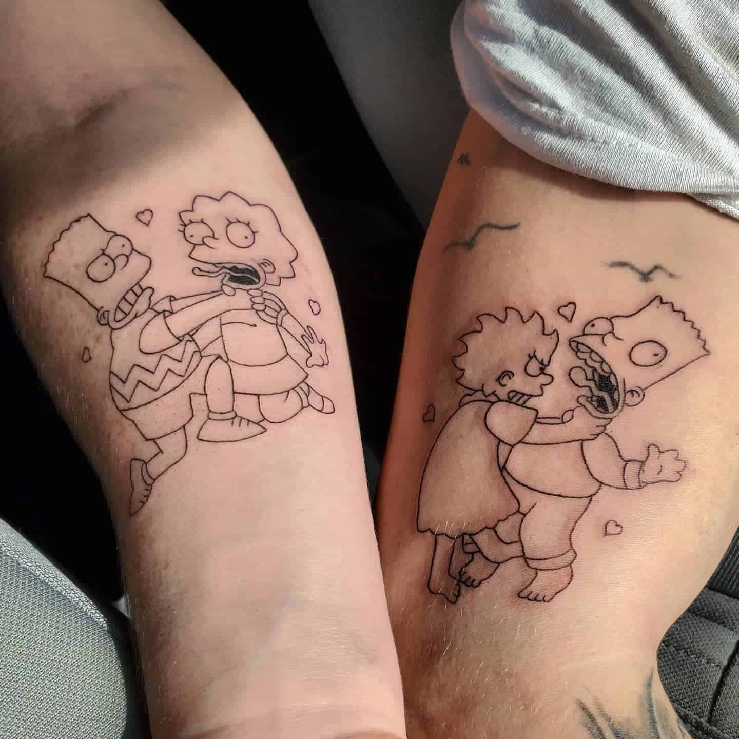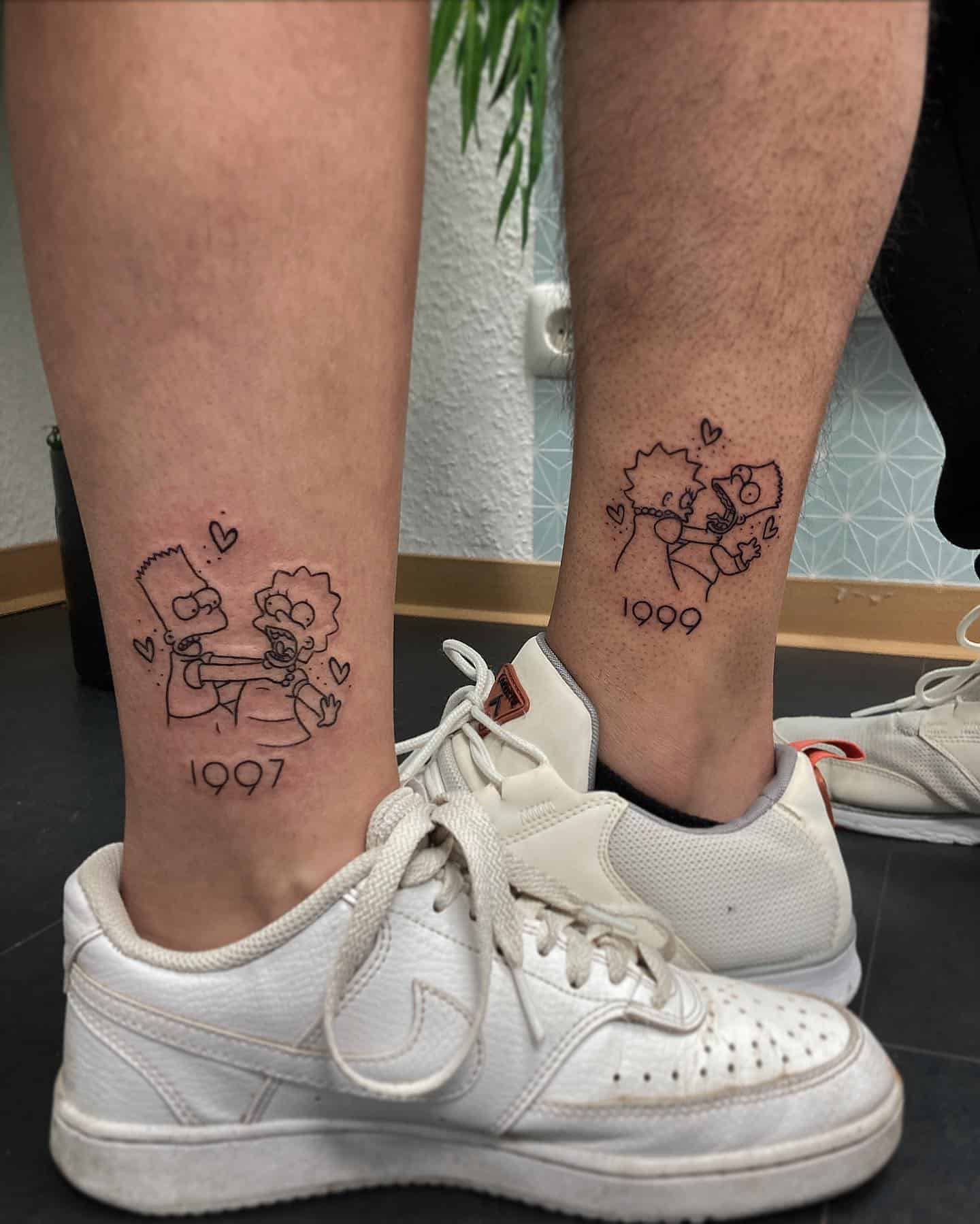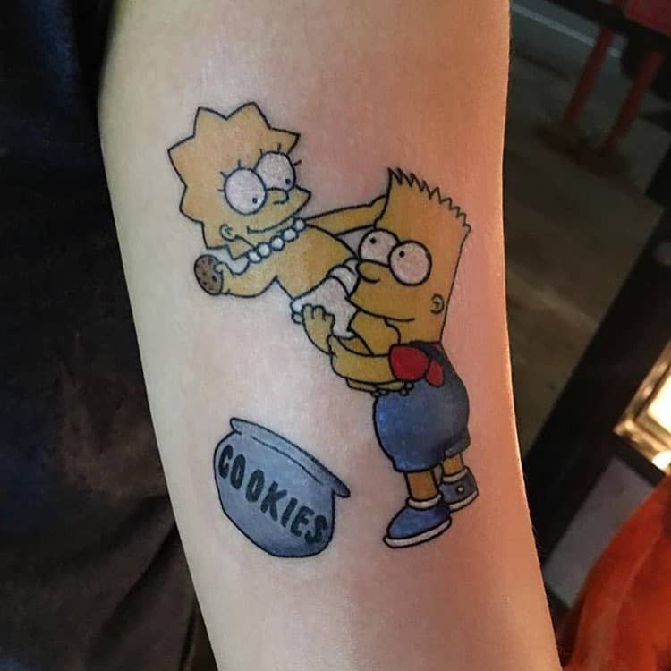 I love everything about this. These two playful tattoos of Bart and Lisa Simpson really capture the whole essence of sibling relationships.