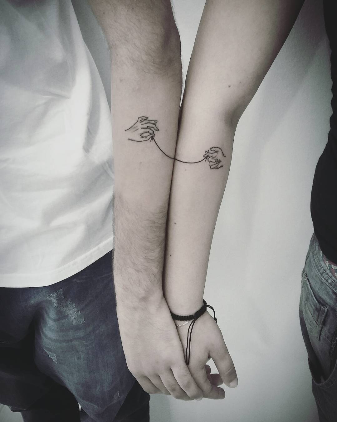 I love how this image beautifully captures the bond between a brother and sister, and it’s all showcased through their matching tattoos of hands connected by a delicate line.