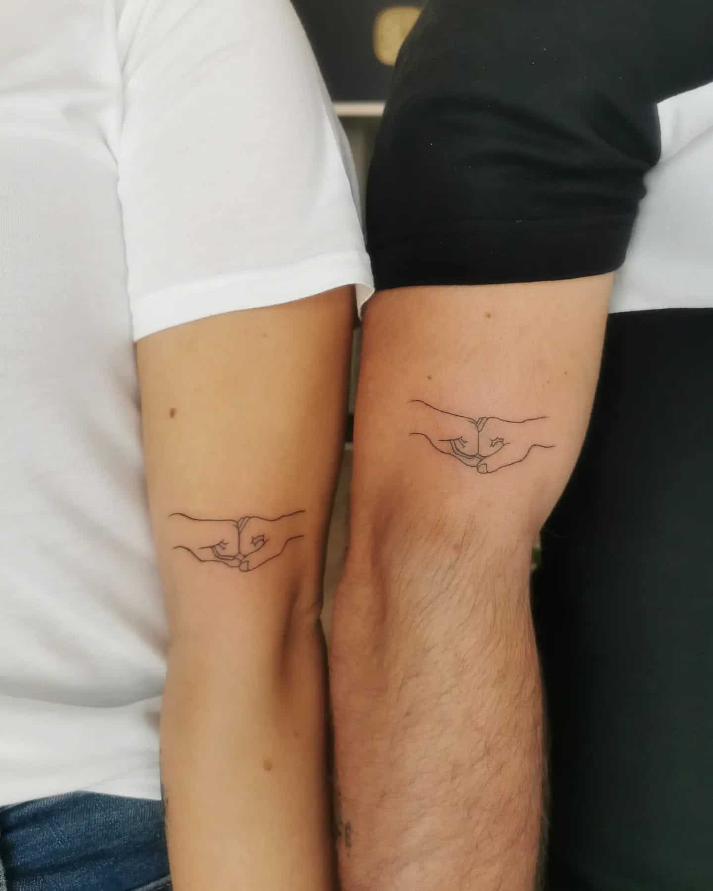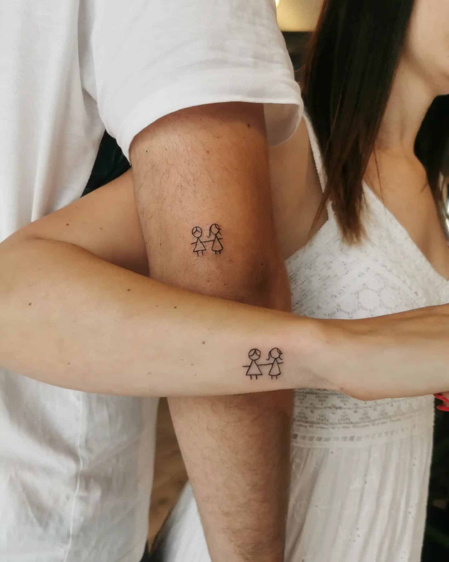 The playful stick figures holding hands are a perfect symbol of their unique connection and all their shared experiences. For anyone thinking about matching tattoos, opting for simple yet meaningful designs can create some really lasting memories.