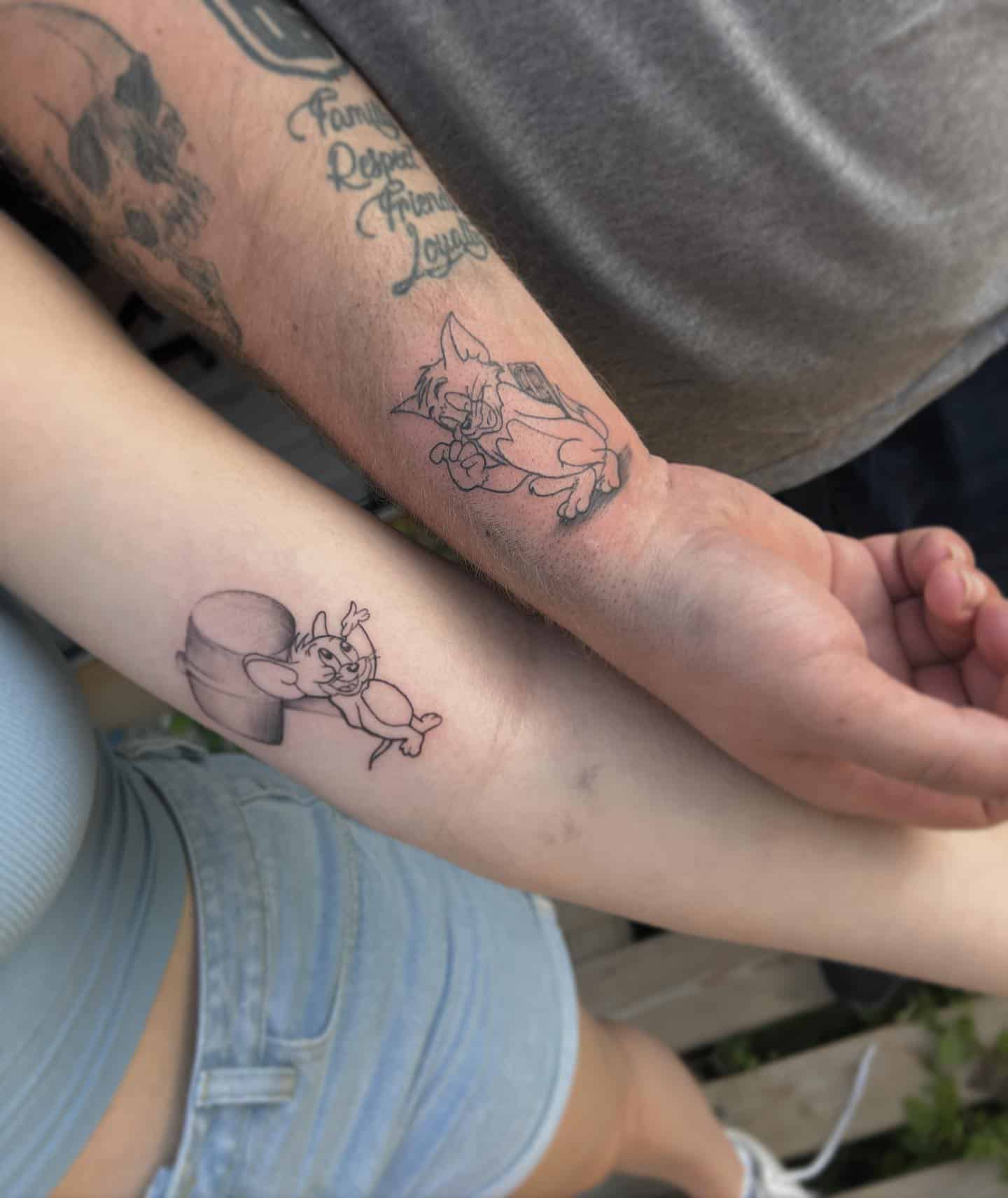 This is such a delightful image that captures the playful spirit of brother-sister tattoos, and who doesn’t love the iconic duo Tom and Jerry?