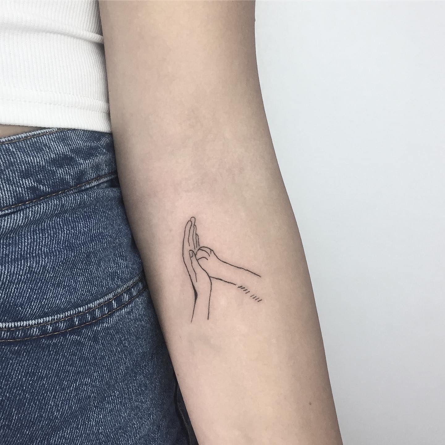 I just think this is the sweetest thing. The tattoo features a simple but striking outline of a hand gently holding a cat’s paw.