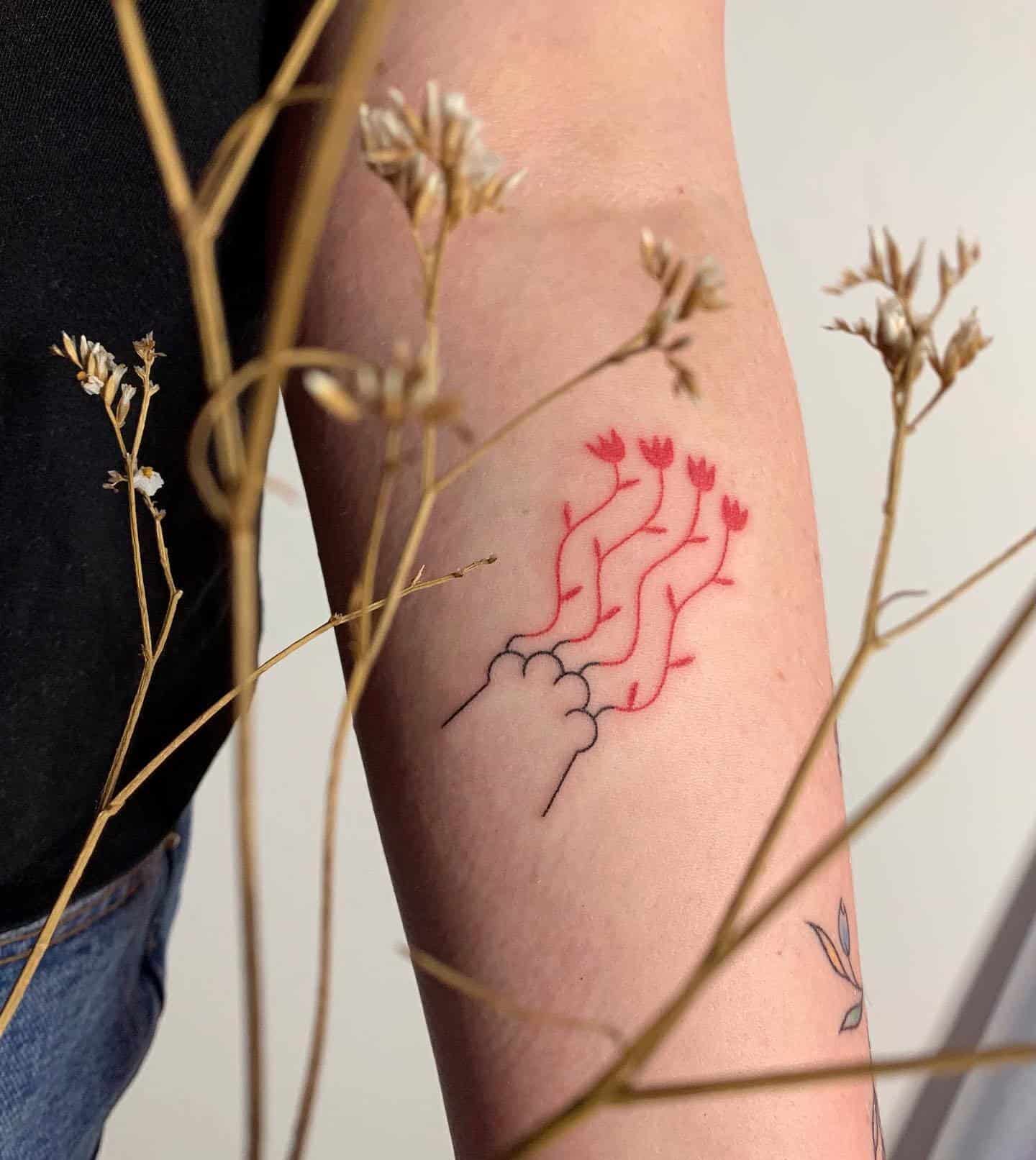 This design is like a piece of modern art. The tattoo features a stylized cat paw that’s surrounded by delicate, flowing lines that look like flowers.