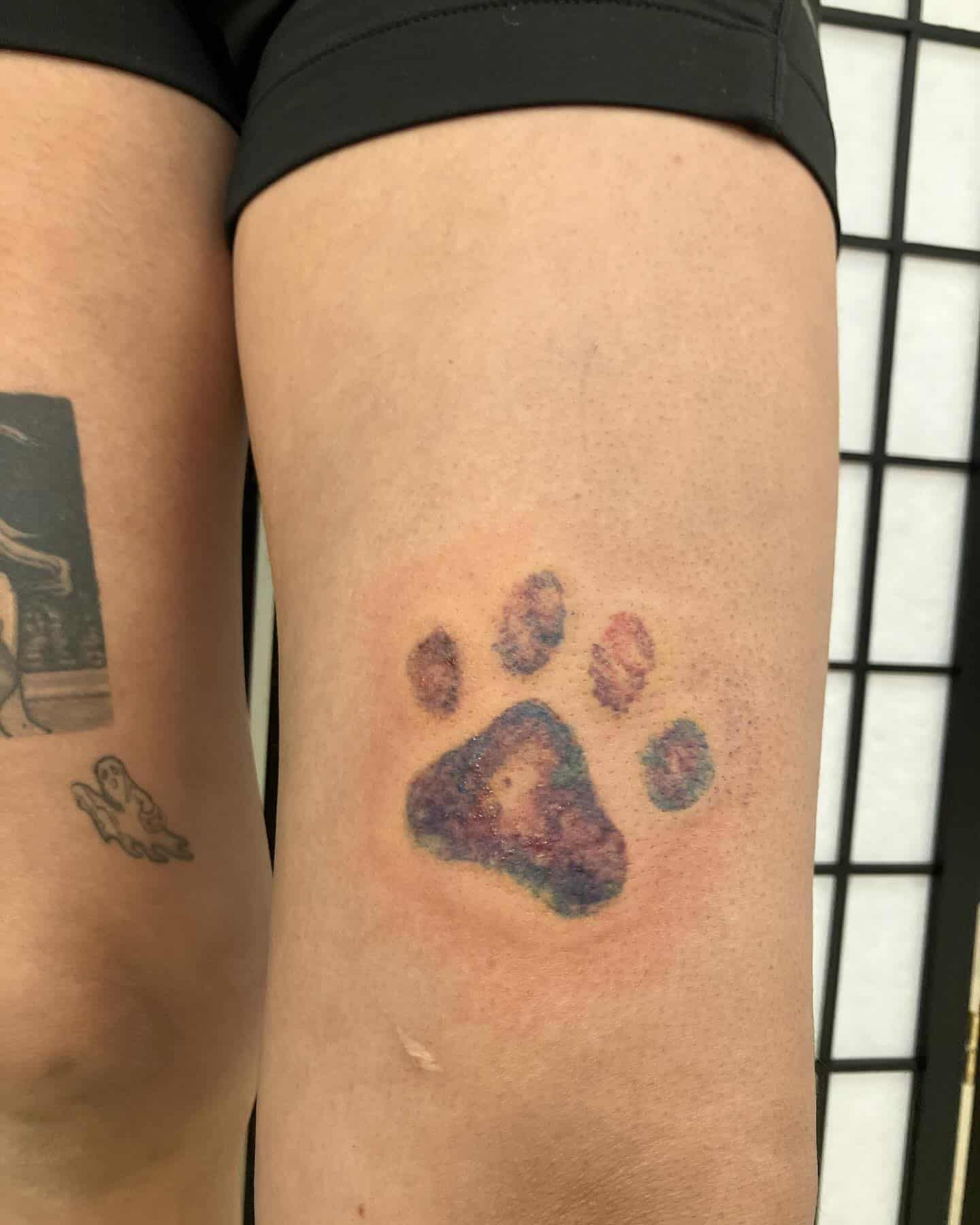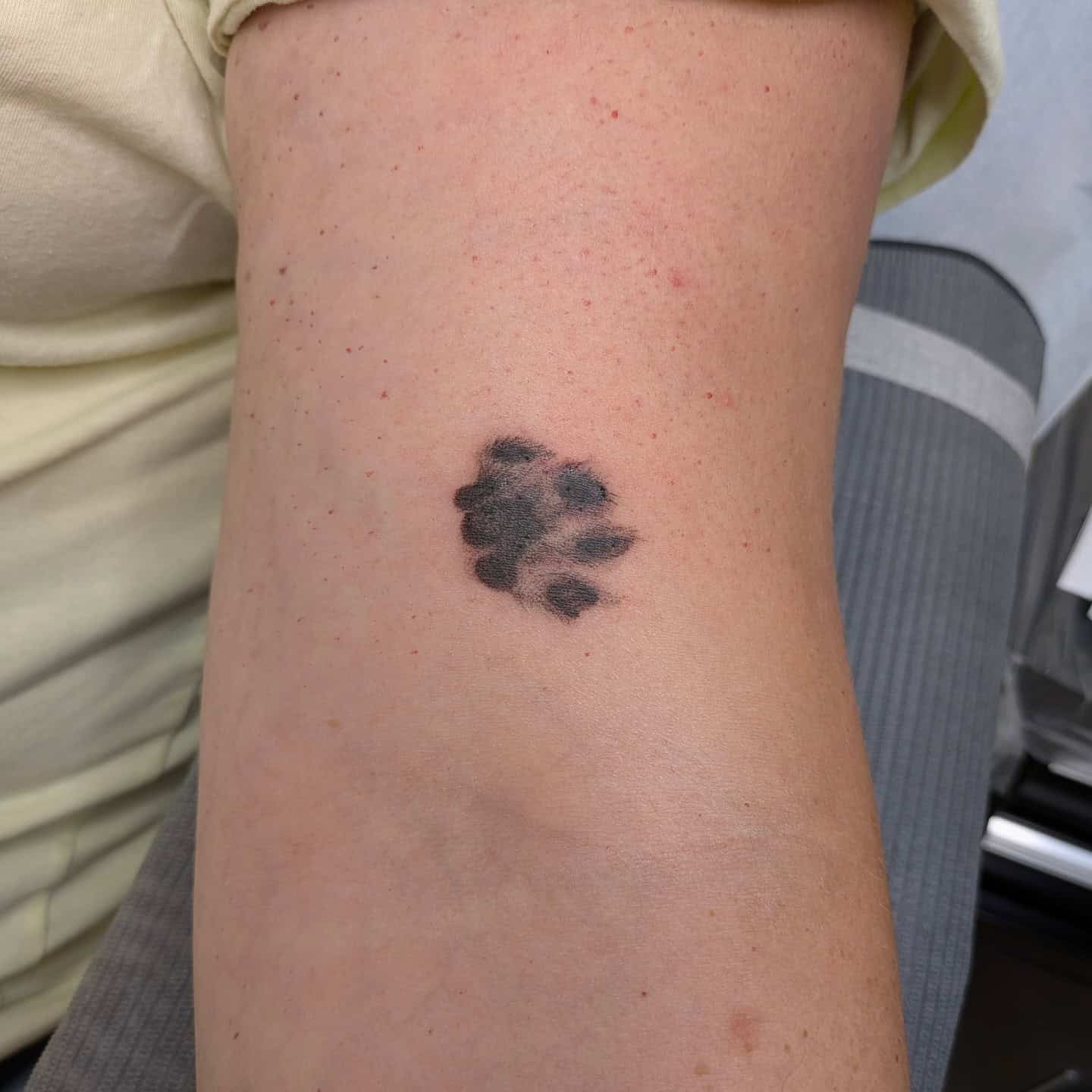This look is all about texture. The tattoo shows a detailed cat paw print with a really unique textured effect around it.