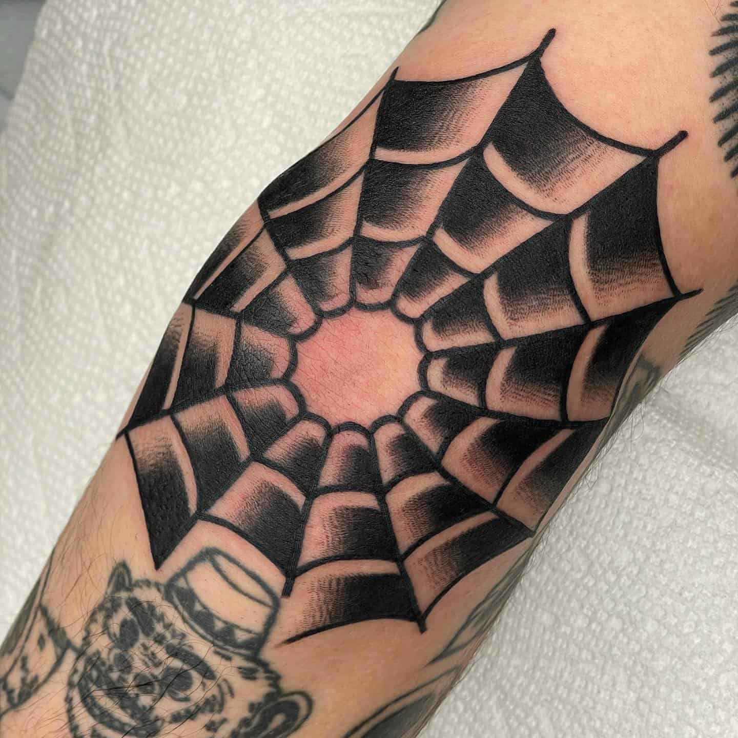 You can never go wrong with a classic, and this tattoo showcases that perfectly. It’s a detailed spider web pattern that extends outward, which gives it a cool three-dimensional effect.