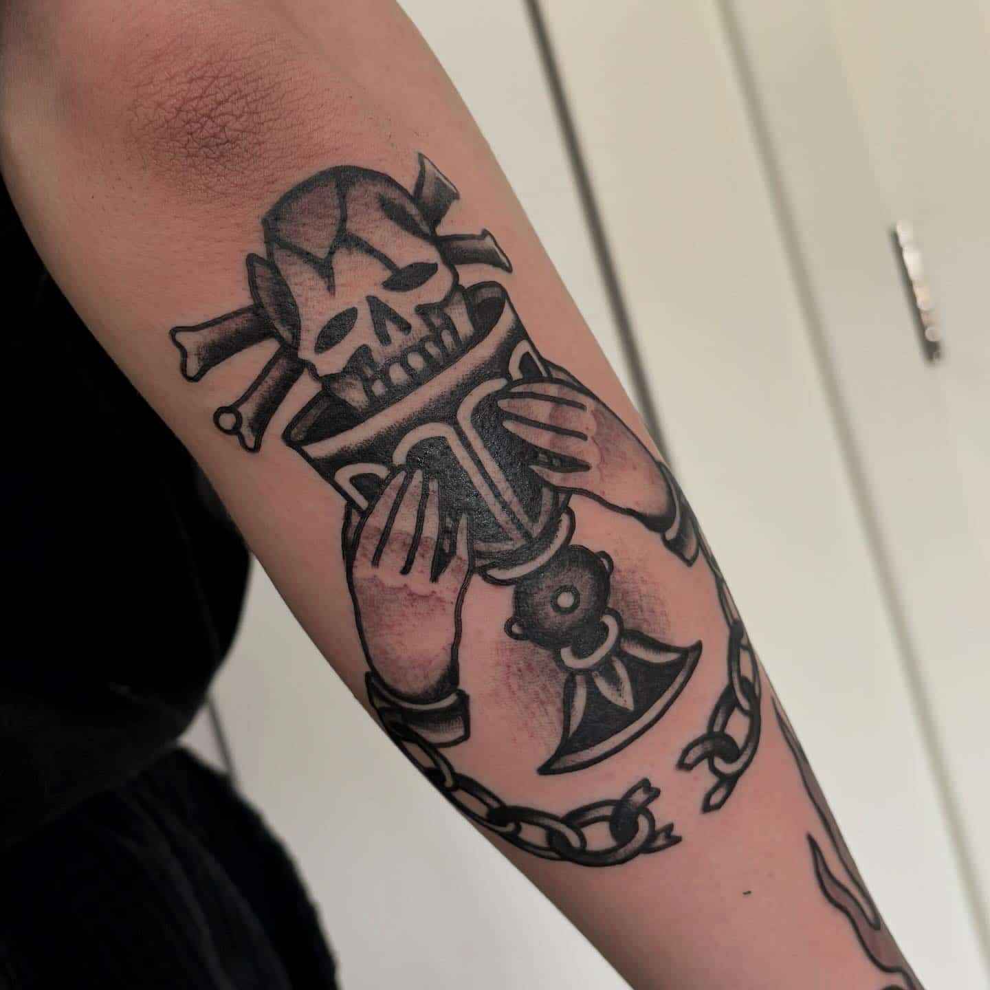 This tattoo would be perfect for individuals looking to express a unique, rebellious style. It’s a great choice for those who appreciate dark themes in their body art.