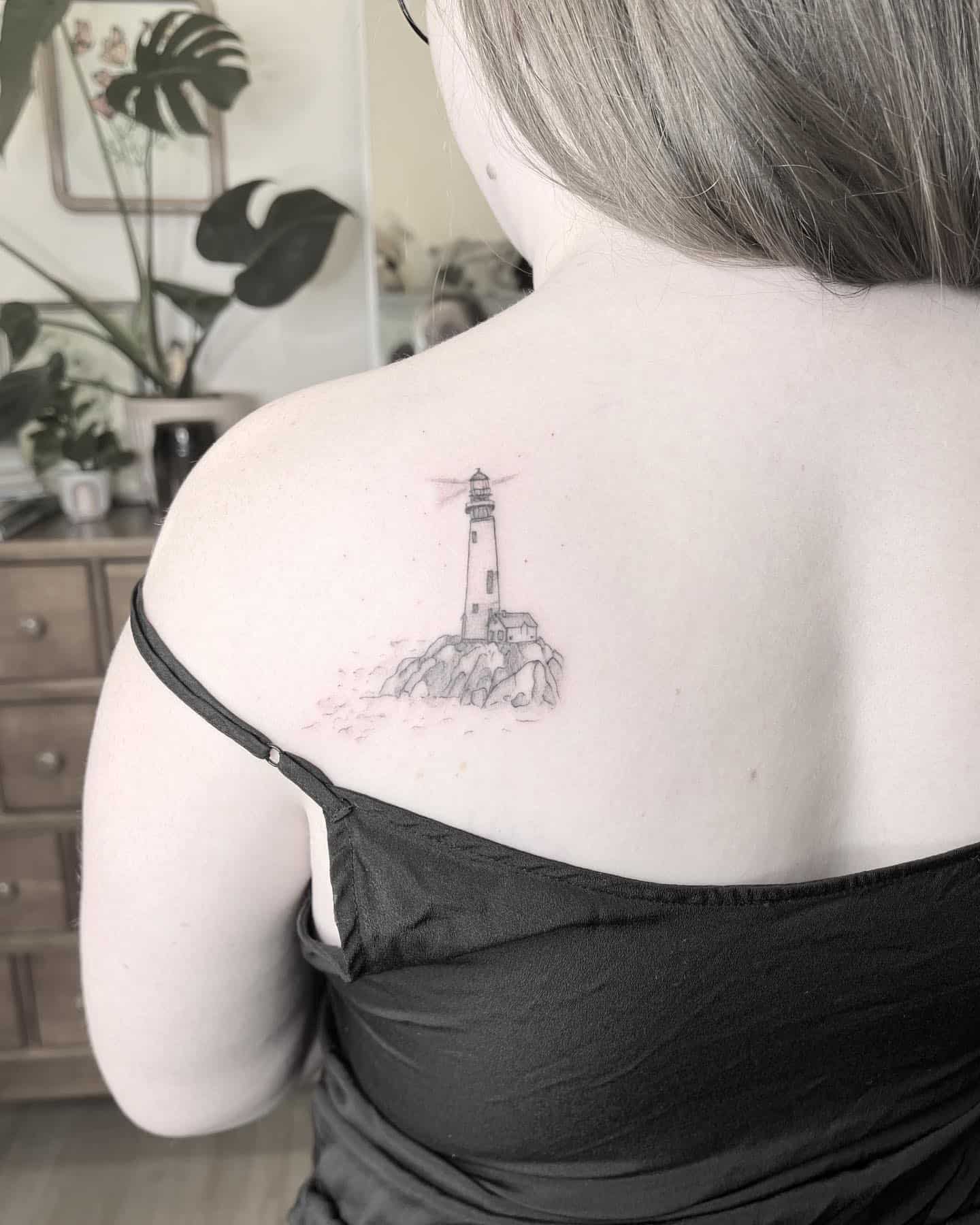 You really can’t go wrong with a classic minimalist design. This tattoo has a detailed lighthouse standing tall, with simple lines that really accentuate its shape and structure.