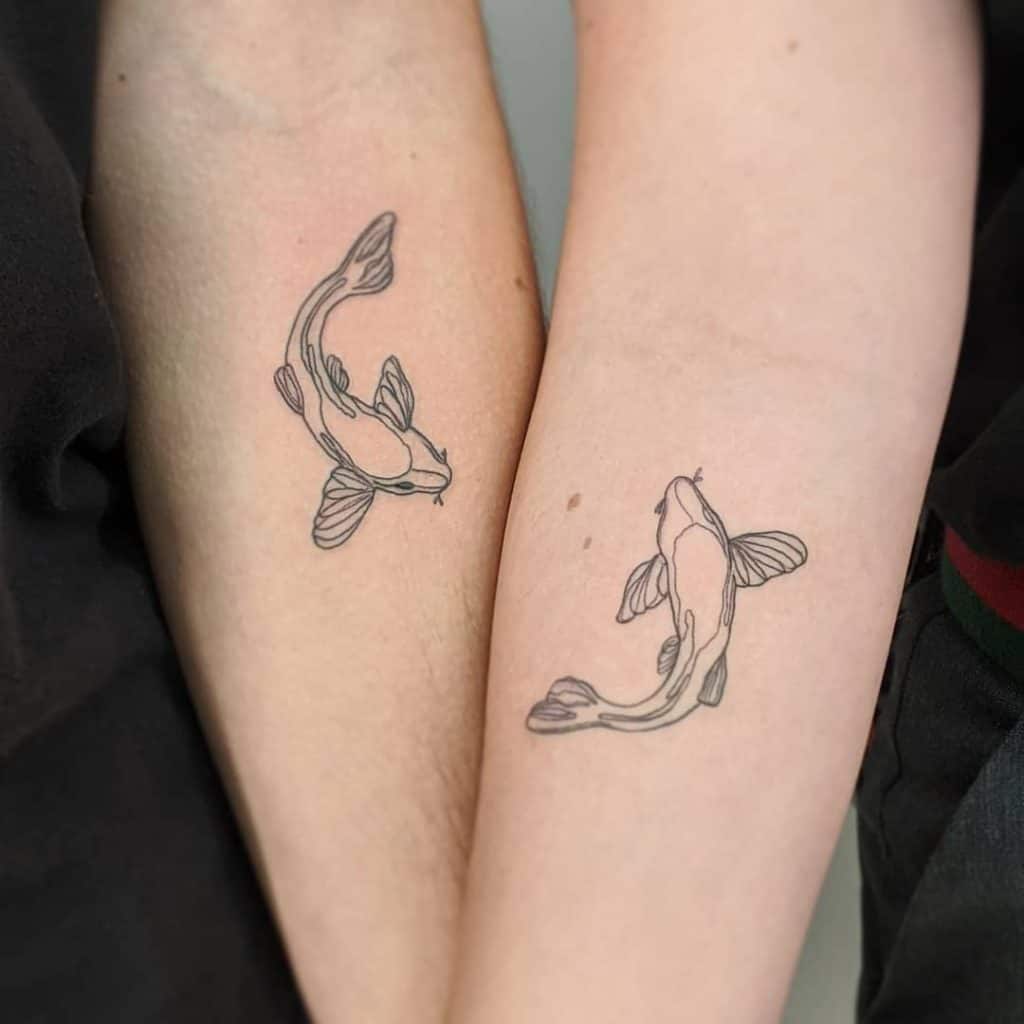 Placed on each friend’s arm, the koi fish represent strength, resilience, and a friendship that flows peacefully through life.
