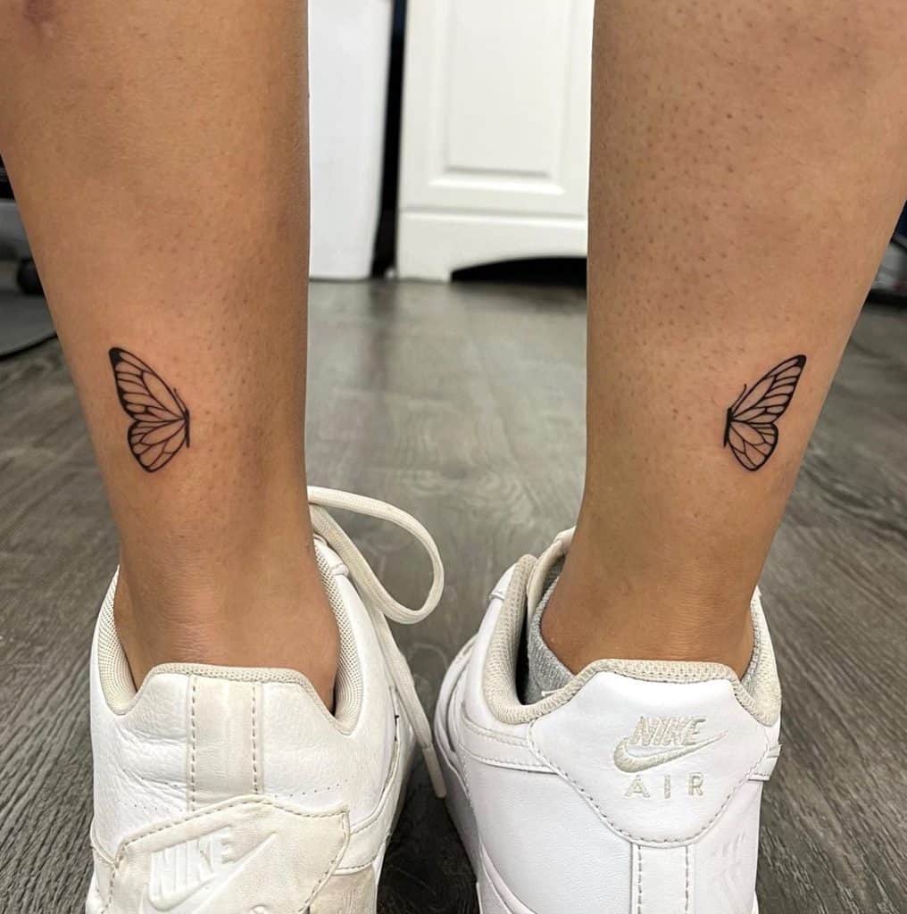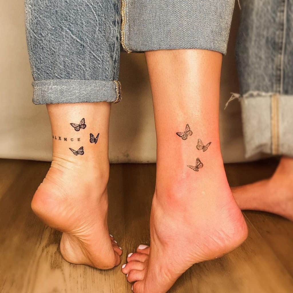43. Butterfly Balance Friendship Tattoos on Ankles