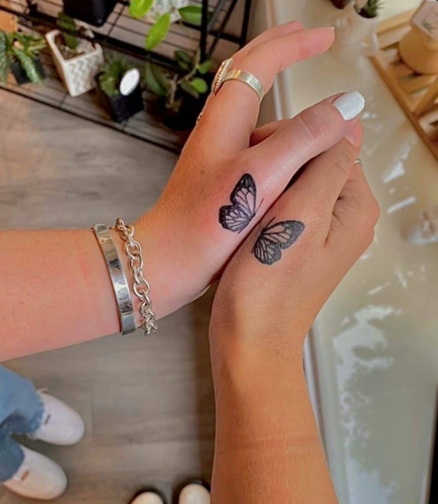 I think these matching tattoos are a beautiful representation of transformation and freedom, symbolizing a friendship that supports each other’s growth and individuality.