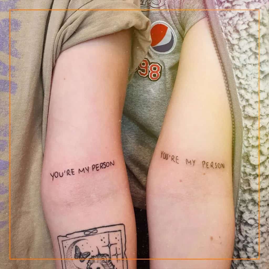 35. Minimalist ‘You Are My Person’ Friendship Tattoos on Arms