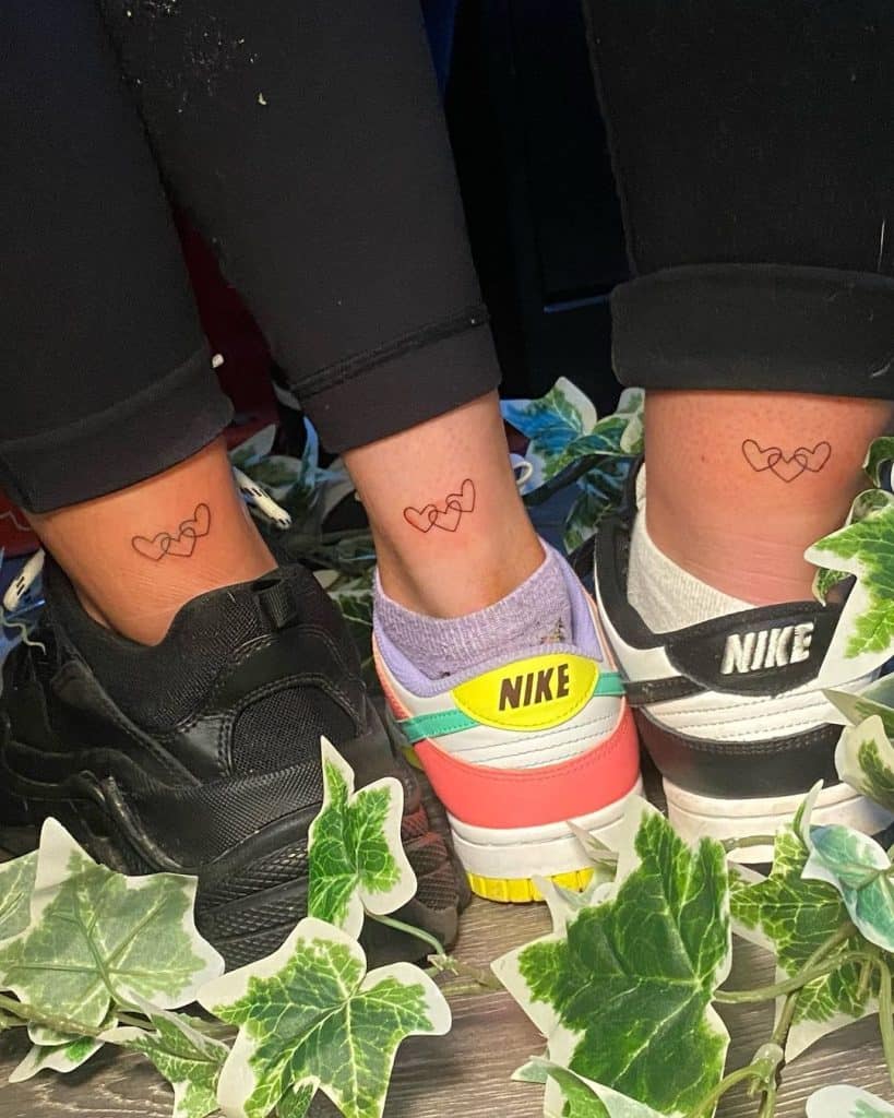 These simple and sweet tattoos show three interlinked hearts on each ankle, creating a symbol for an unbreakable bond.