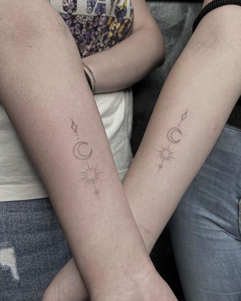 Having them on the forearms is a beautiful representation of a friendship that brings light, warmth, and clarity through all of life’s phases.