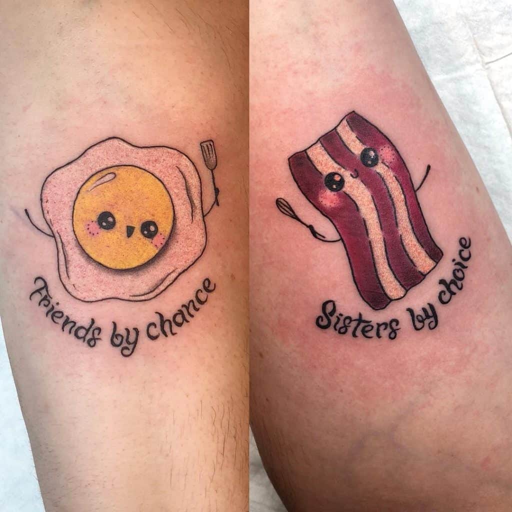 10. Cute Bacon and Egg Friendship Tattoos with Sweet Messages