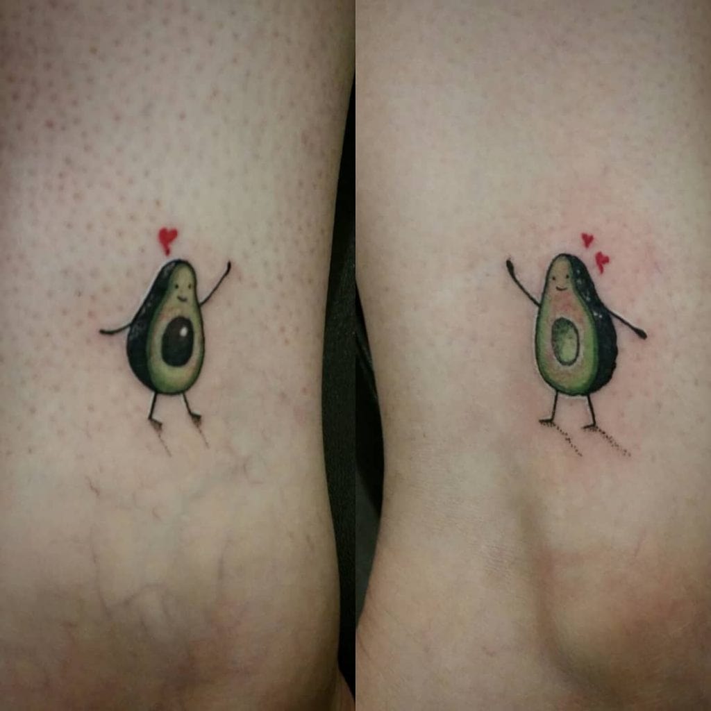 2. Adorable Avocado Best Friend Tattoos with Hearts