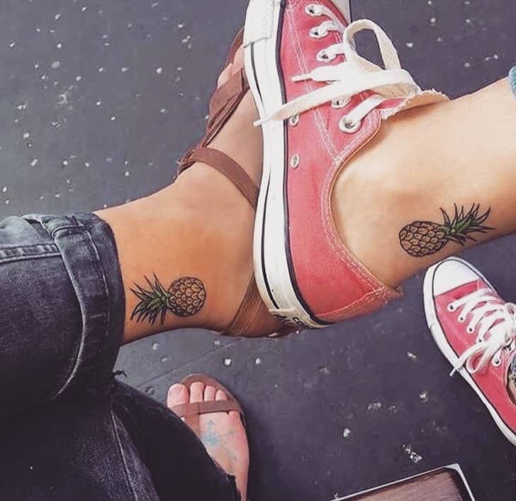 How fun are these? These vibrant pineapple tattoos sit perfectly on each friend’s ankle, adding a great pop of color and a tropical feel.