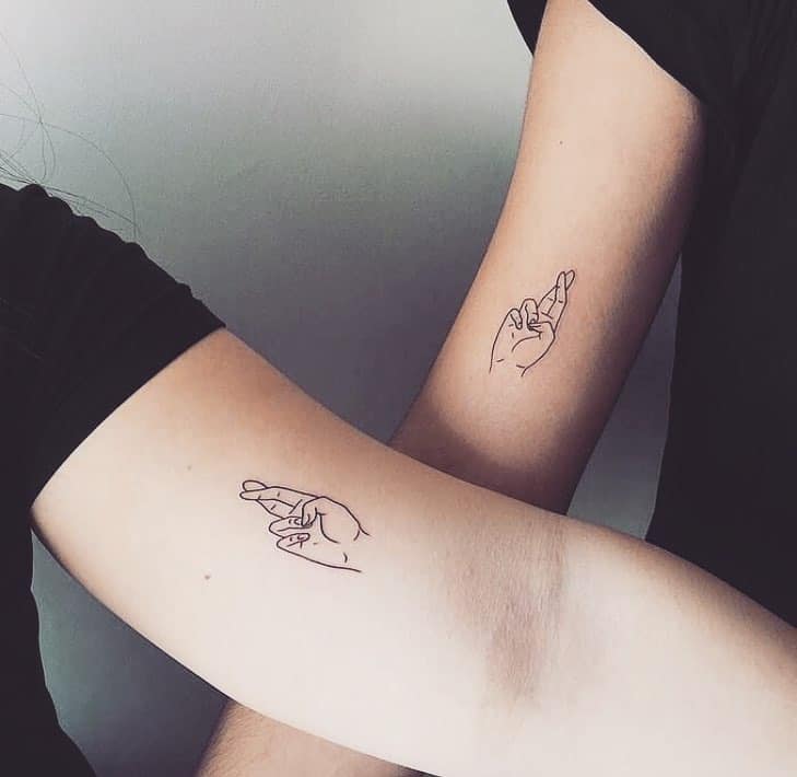 For a minimalist look, these tattoos are a great choice. They show a delicate line drawing of a hand with its fingers crossed.