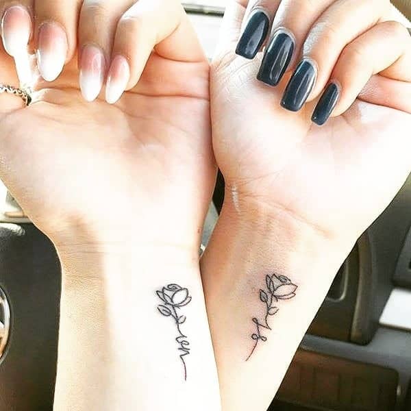 These matching rose tattoos symbolize beauty and resilience, celebrating a friendship that blossoms with love and grace.