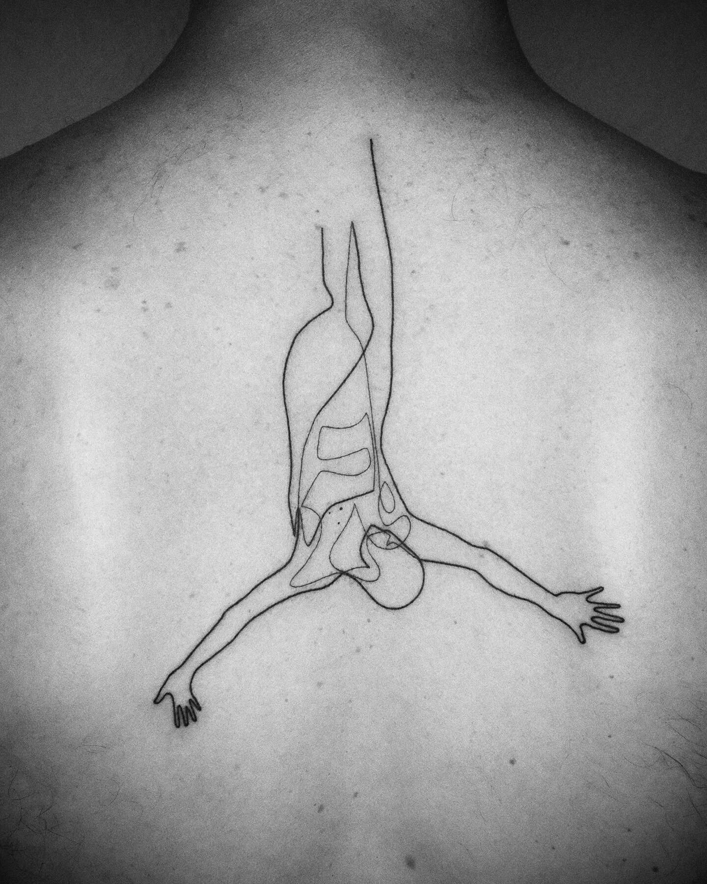 How gorgeous is this one? This tattoo really stands out with its striking silhouette design, showcasing a graceful figure that definitely catches the eye.