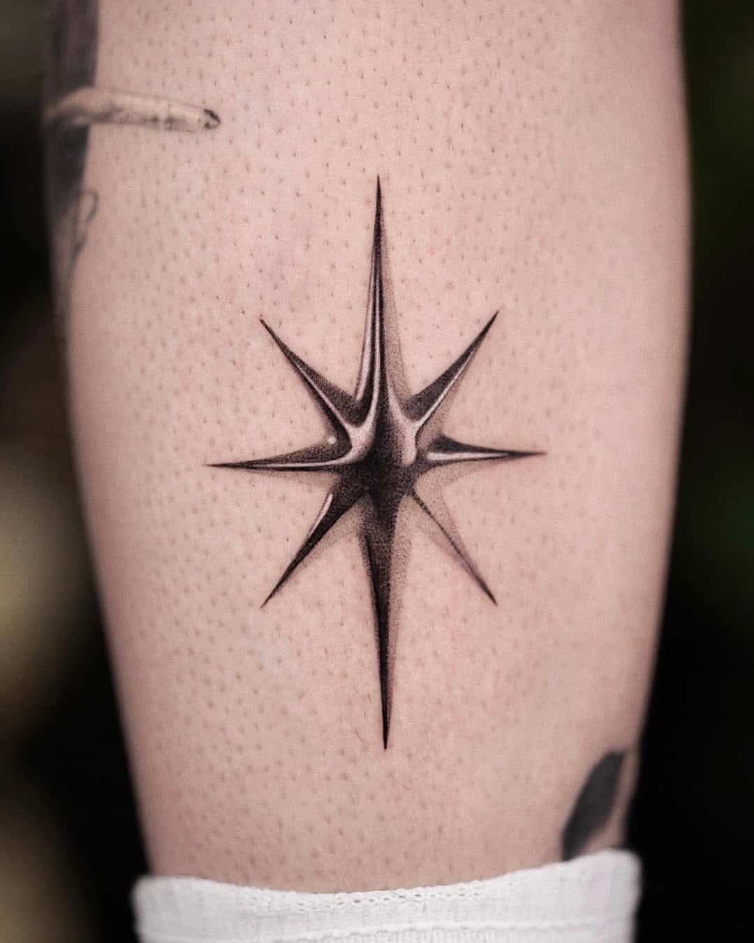I’m a big fan of this tattoo for its striking starburst design, which creates a real sense of movement and energy. The bold lines and shading give it a three dimensional look, making it almost pop right off the skin.