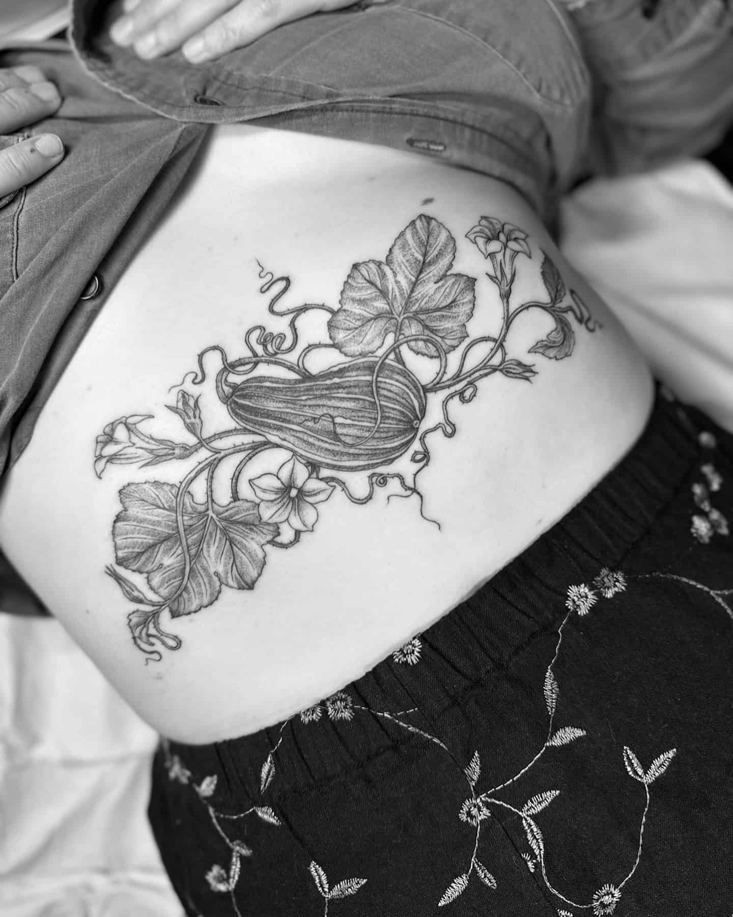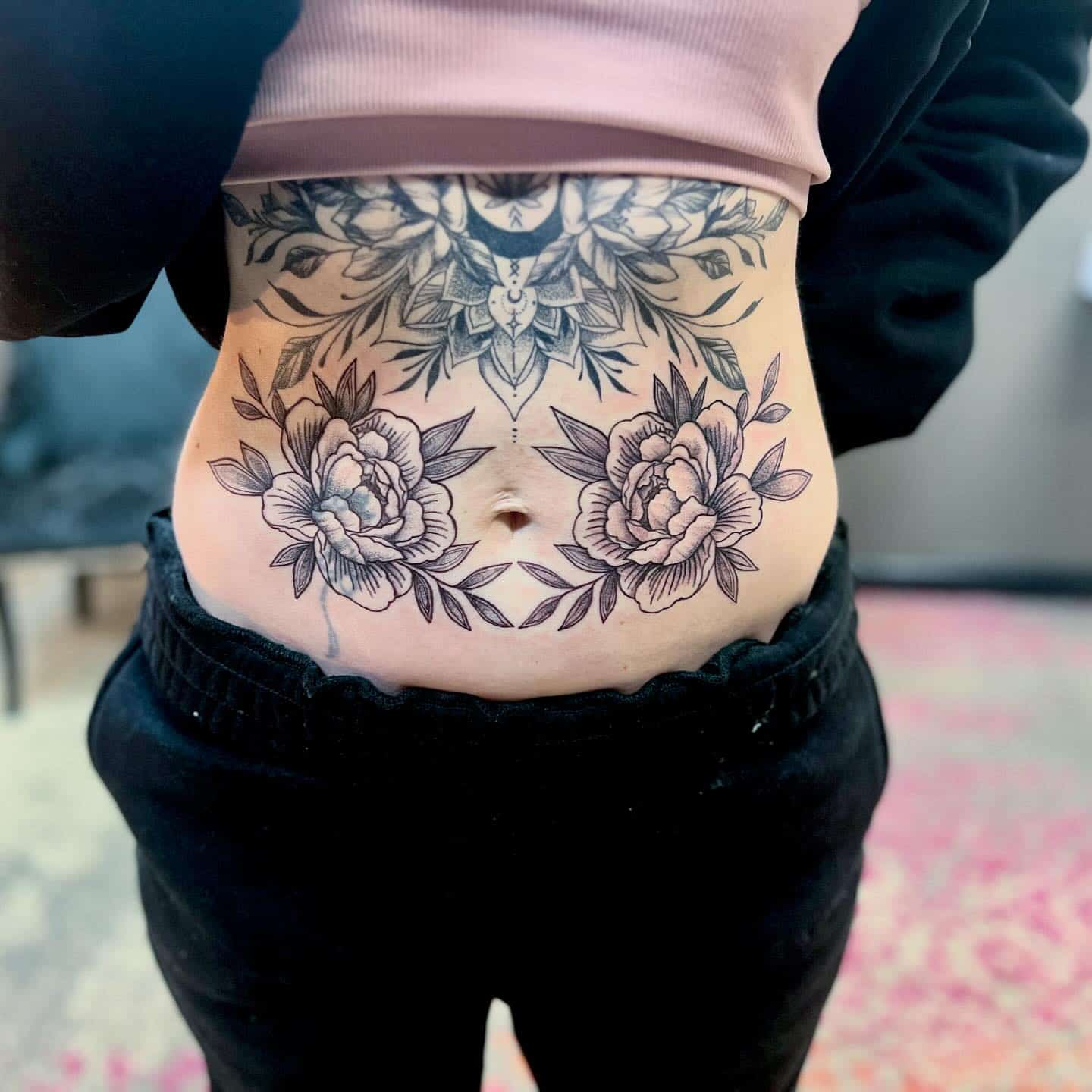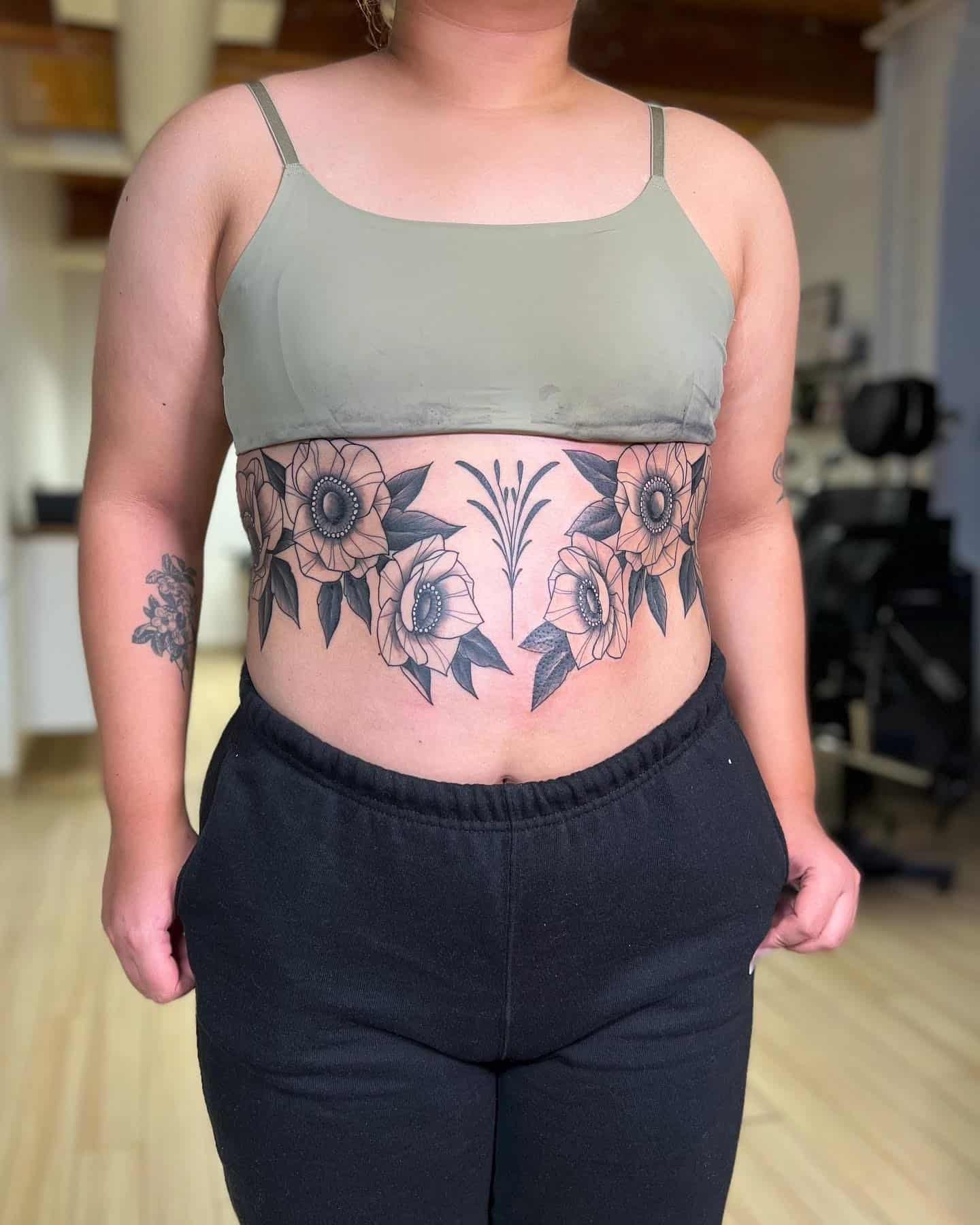 Another day, another stunning floral tattoo that I’m adding to my inspiration list. This one showcases intricate designs that flow so beautifully across the upper stomach.
