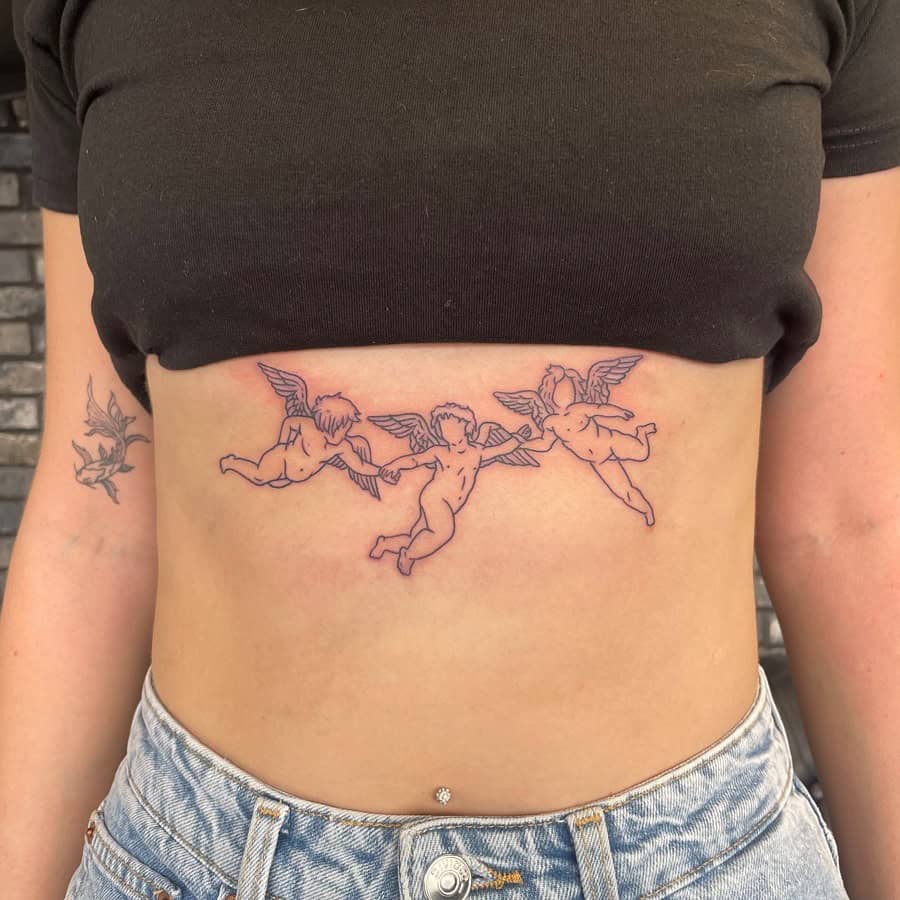 How cute are these cherubs? This tattoo features three charming little guys soaring above, and it just captures a sense of whimsy and innocence.