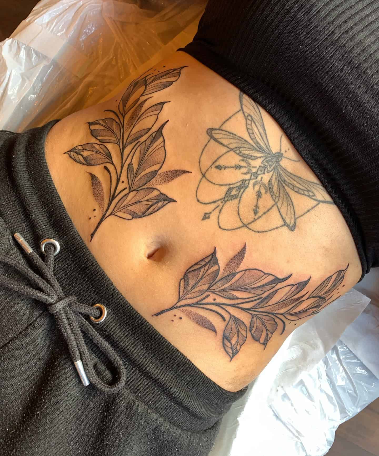 For upper stomach tattoos, it’s a non negotiable to think about shape and placement to make sure it complements your body beautifully.