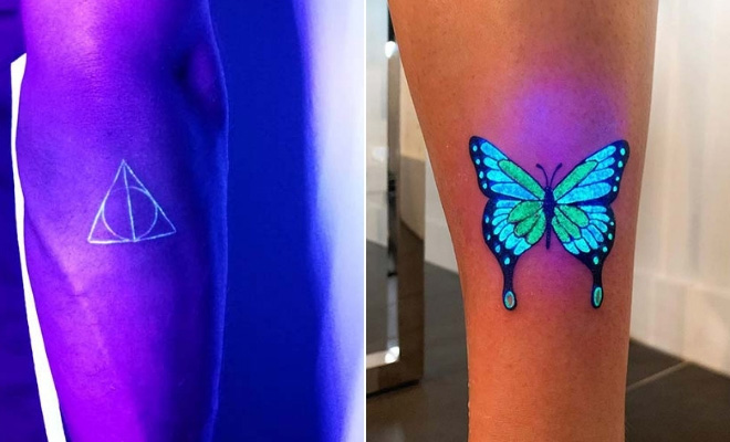 There are so many fun tattoo trends happening right now, but I think this is the most excited I’ve ever been about one. I’m talking about UV or black light tattoos! They use a dye that’s visible under a black light, so you can have a tattoo that’s beautiful in daylight and then has a secret glow-up.